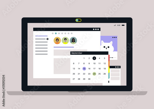 Wall mural a laptop display with open program email windows, calendar and chat app
