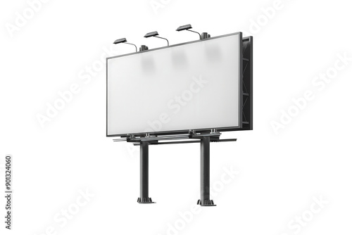 The watermark will not be included on Wall mural.: A large, empty billboard with lighting fixtures on top stands against a plain background, ready for
