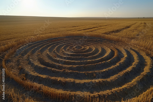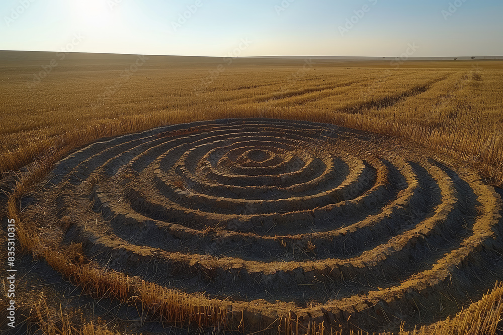 Wall mural a large, precise, and unexplained circular formation on the ground. concept of crop circles and anci - Wall murals Wall mural a large, precise, and unexplained circular formation on the ground. concept of crop circles and anci - Wall murals