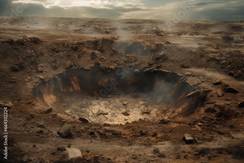 The watermark will not be included on Wall mural.: A large crater surrounded with barren land and rock