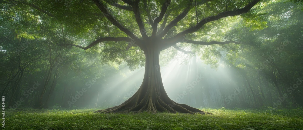 The watermark will not be included on Wall mural.: A large tree with a trunk that is almost as tall as the tree
