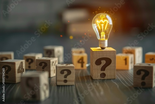 Wall mural a lightbulb illuminates a question mark block, symbolizing the power of knowledge and finding soluti - Wall murals Wall mural a lightbulb illuminates a question mark block, symbolizing the power of knowledge and finding soluti - Wall murals