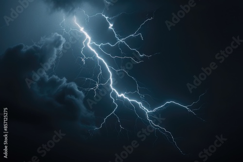 The watermark will not be included on Wall mural.: A lightning bolt illuminates the dark sky during a thunderstorm
