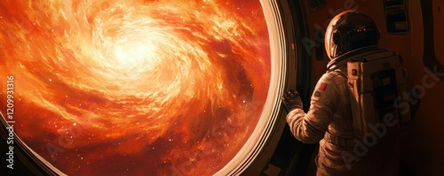 Wall mural a lone astronaut gazing at a swirling nebula from a spaceship window. - Wall murals Wall mural a lone astronaut gazing at a swirling nebula from a spaceship window. - Wall murals