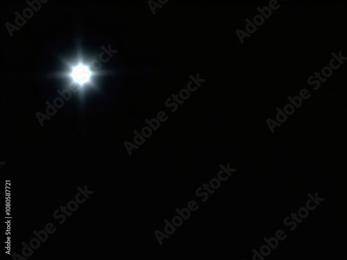 The watermark will not be included on Wall mural.: A lone star shines brightly against a backdrop of deep blackness, its light piercing through the dar