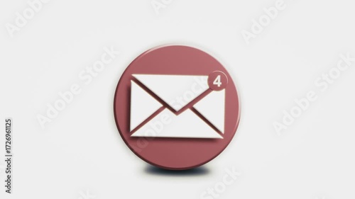 The watermark will not be included on Wall mural.: A looping 3d icon of a mail envelope with an animated red notification badge - this motion graphic re