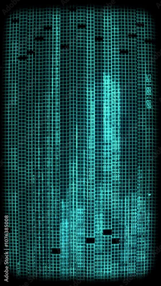 The watermark will not be included on Wall mural.: A looping digital style screen background with green data glitch and interference effects -