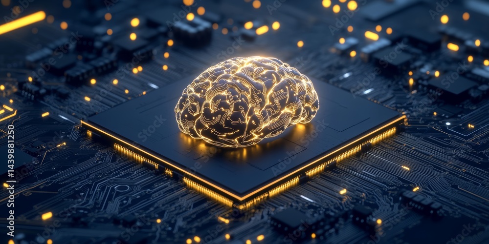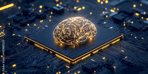 Wall mural a luminous ai brain chip illuminates a circuit board deep learning concept or big data analytics . - Wall murals Wall mural a luminous ai brain chip illuminates a circuit board deep learning concept or big data analytics . - Wall murals