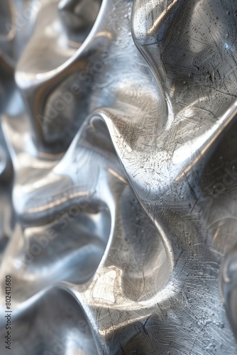 The watermark will not be included on Wall mural.: A macro image showcasing a wavy metal texture with flowing lines and detailed embossed patterns