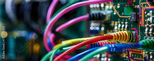Wall mural a macro shot of a circuit board with colorful wires and components