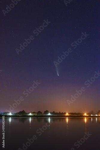 The watermark will not be included on Wall mural.: A magical starry night on the river by the milky way and a comet in the sky