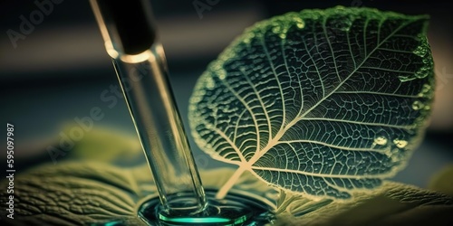 The watermark will not be included on Wall mural.: A magnified view of a leaf under a microscope - the idea of biotechnology generative ai