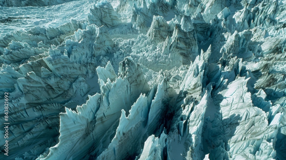 Wall mural a majestic glacier with rows upon rows of sharp penitente formations piercing through the surface. - Wall murals Wall mural a majestic glacier with rows upon rows of sharp penitente formations piercing through the surface. - Wall murals