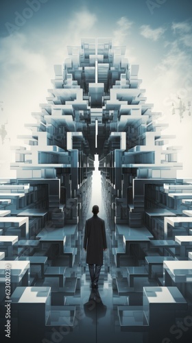 Wall mural a man in a suit is walking through a maze. generative ai image.