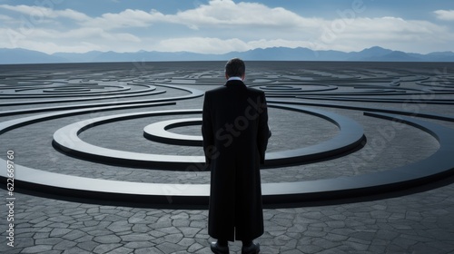 The watermark will not be included on Wall mural.: A man in a suit standing in front of a circular maze - generative ai image -