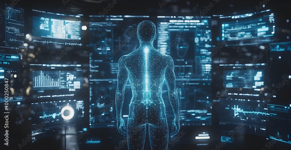 Wall mural a man is standing in front of a computer monitor with a blue screen - Wall murals Wall mural a man is standing in front of a computer monitor with a blue screen - Wall murals