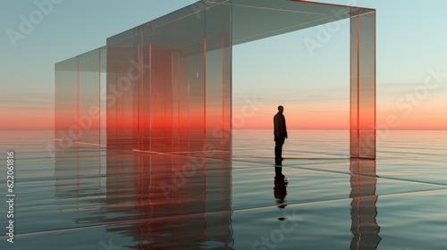 Wall mural a man standing in front of a glass structure. generative ai image. - Wall murals Wall mural a man standing in front of a glass structure. generative ai image. - Wall murals