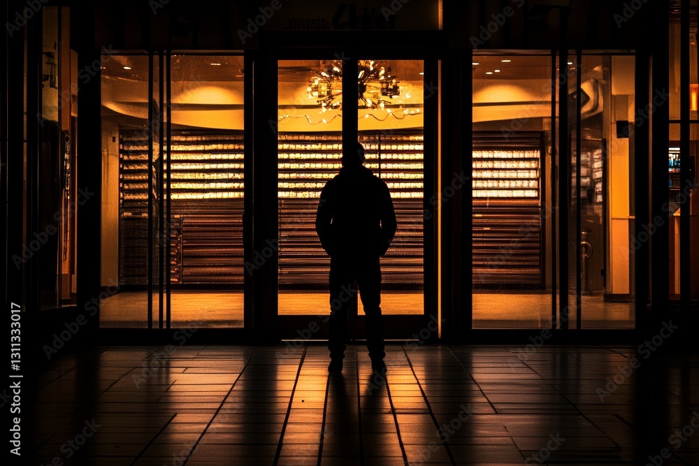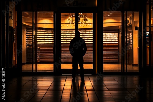 The watermark will not be included on Wall mural.: A man stands in front of a building with a large window