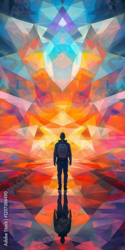 Wall mural a man stands in front of a colorful, abstract background