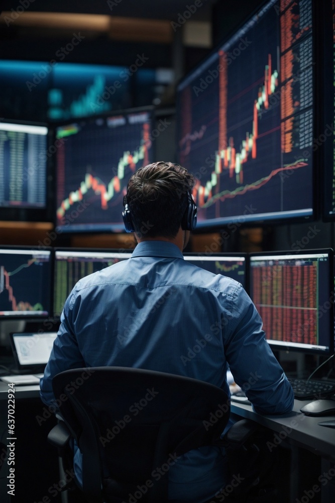 Wall mural a man working at a desk with multiple computer monitors - Wall murals Wall mural a man working at a desk with multiple computer monitors - Wall murals