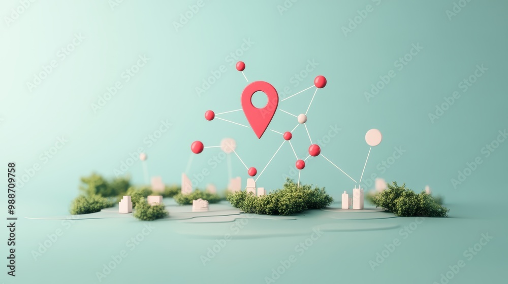 Wall mural : A map with icons representing different locations, each connected to a central hub, demonstrating th