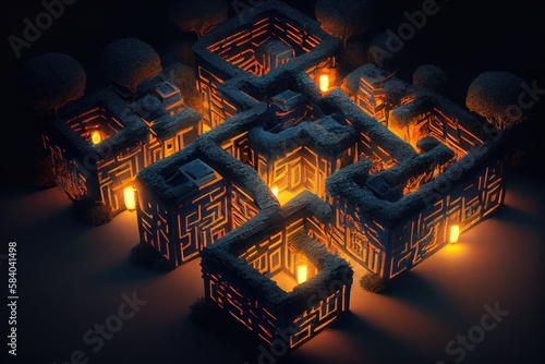 The watermark will not be included on Wall mural.: A maze of house lights, illuminating the way in the dark, created with generative ai