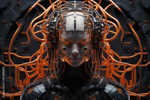 Wall mural a mechanical masterpiece adorned with intricate wires, the robot's head serves as a canvas for a wil