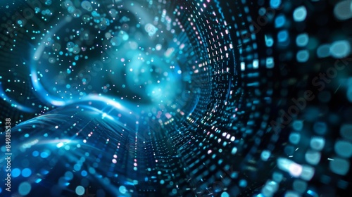 Wall mural a mesmerizing abstract image of a blue quantum tunnel, representing data travel and high-tech digita