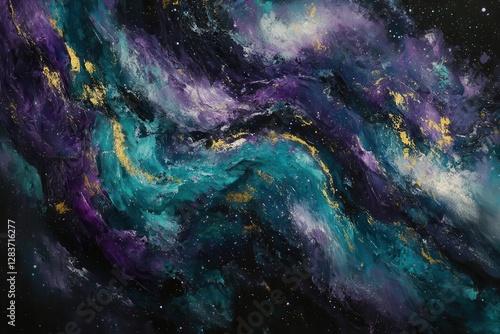 The watermark will not be included on Wall mural.: A mesmerizing cosmic nebula swirling with iridescent purples and teals, illuminated by ethereal star