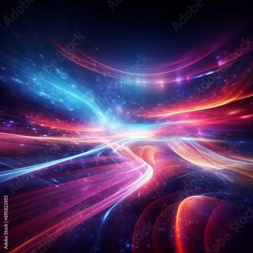 Wall mural : A mesmerizing digital abstract background showcasing neon light trails and ethereal shapes against a