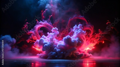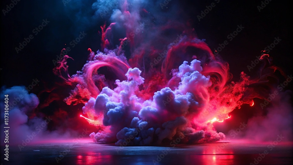 The watermark will not be included on Wall mural.: A mesmerizing display of artificial magic smoke swirls and dances in a captivating red light against
