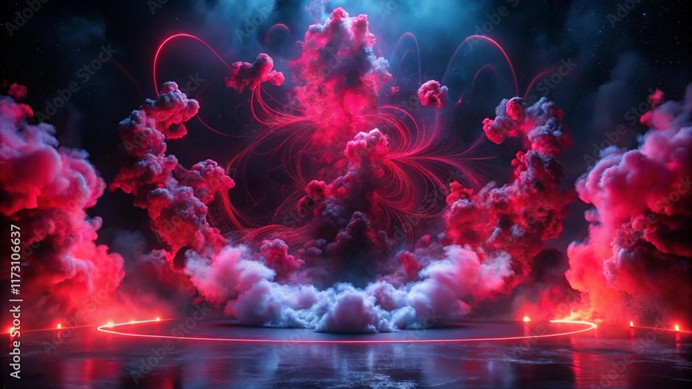 A mesmerizing display of artificial magic smoke swirls and dances in a captivating red light againstWall mural