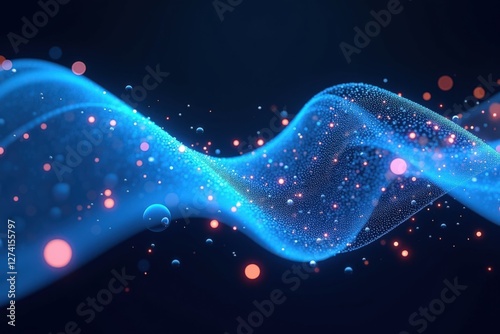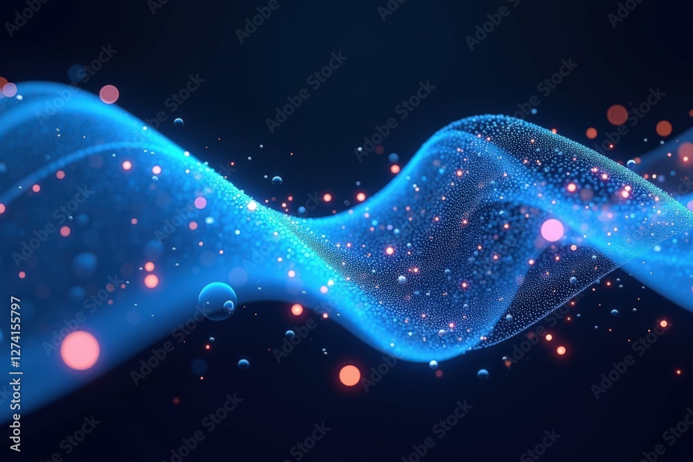 Wall mural : A mesmerizing display of colorful waves and floating particles in a dark background, capturing the e