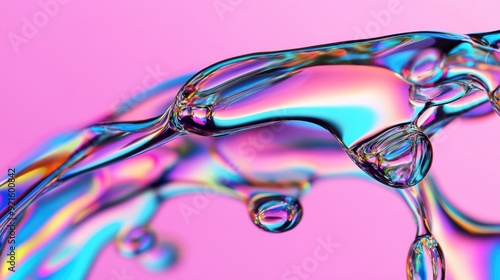 Wall mural a mesmerizing display of iridescent liquid cascades smoothly, reflecting vibrant colors on a soft pi