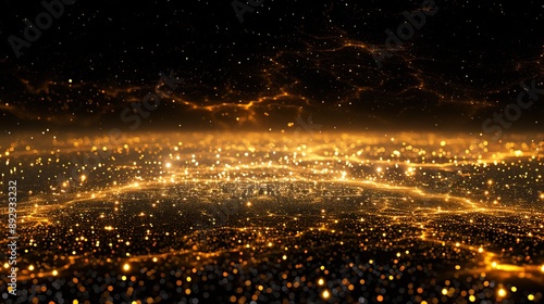 Wall mural : A mesmerizing golden galaxy with shimmering cosmic particles floating in the infinite space, evoking