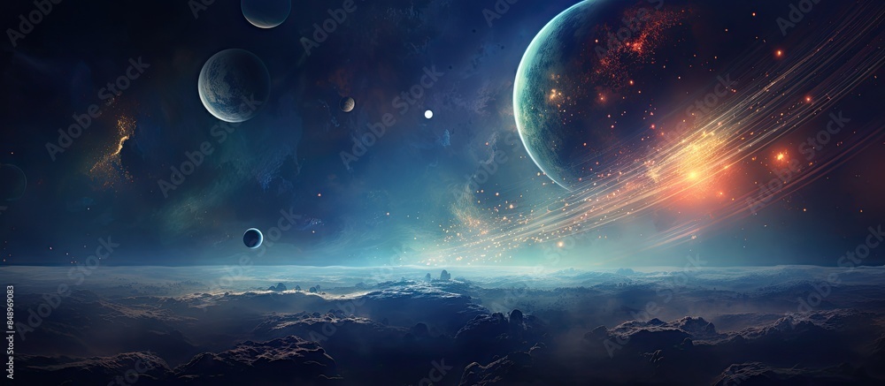 Wall mural a mesmerizing landscape of planets stars and galaxies in outer space highlighting the allure of spac - Wall murals Wall mural a mesmerizing landscape of planets stars and galaxies in outer space highlighting the allure of spac - Wall murals