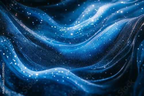 Wall mural a mesmerizing wave of deep blue fabric unfolds. tiny stars shimmer across its surface. this image ra