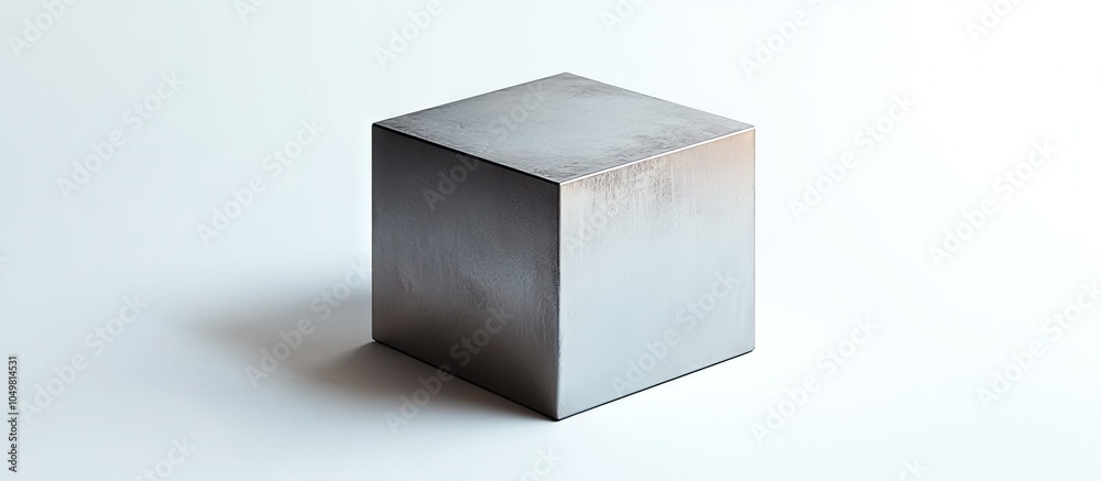 The watermark will not be included on Wall mural.: A metal cube on a white background - with copy space image - place for adding text or design