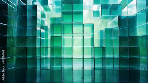 Wall mural a minimalist abstract background with a grid of evenly spaced, semi-transparent boxes in shades of b