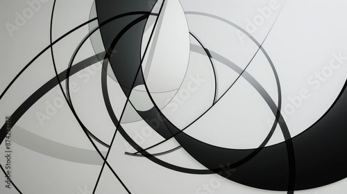 Wall mural a minimalist design of intersecting lines and circles in black and white, evoking a sense of harmony