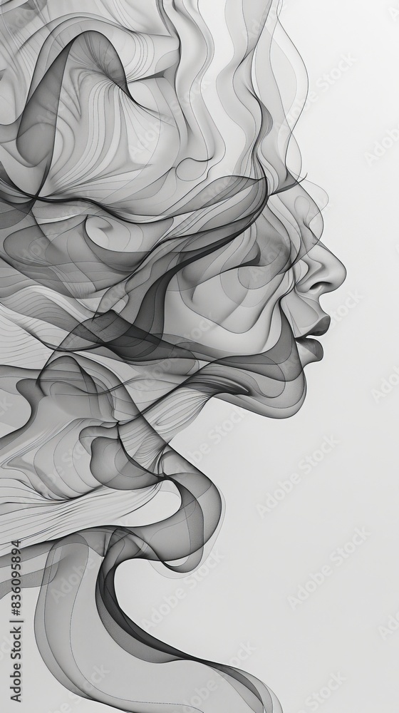 Wall mural a minimalist piece with thin lines and whimsical curves that create abstract shapes. the intricate l