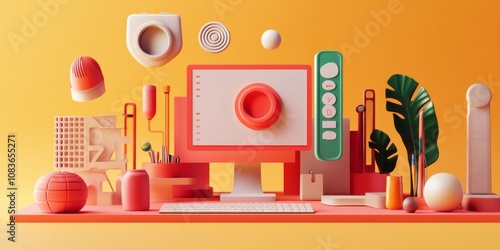 Wall mural a modern, 3d image showing the steps involved in graphic design. it uses icons representing common t
