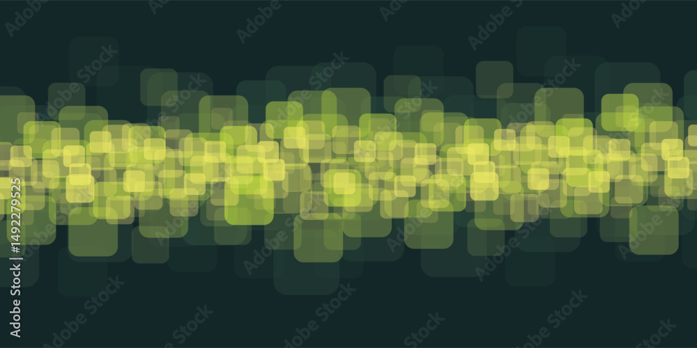 Wall mural : A modern abstract background features overlapping rounded squares in vibrant green and yellow tones