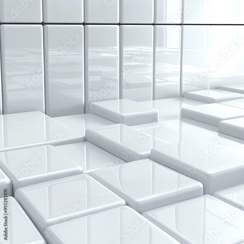 The watermark will not be included on Wall mural.: A modern abstract background featuring glossy white tiles arranged in a seamless pattern, ideal for