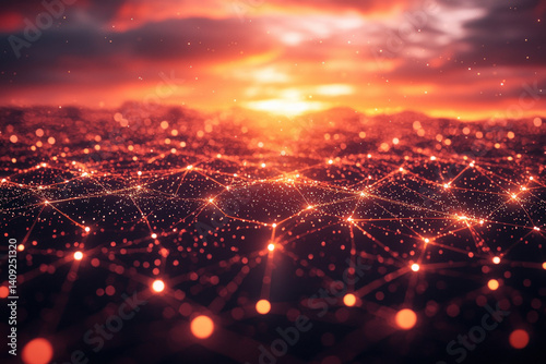 Wall mural : A modern abstract communication background highlighting connectivity with vibrant graphics and tech