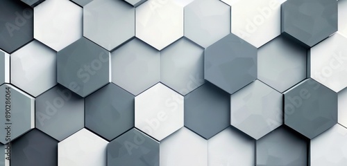 The watermark will not be included on Wall mural.: A modern geometric design with overlapping hexagons in various shades of grey and white, creating a