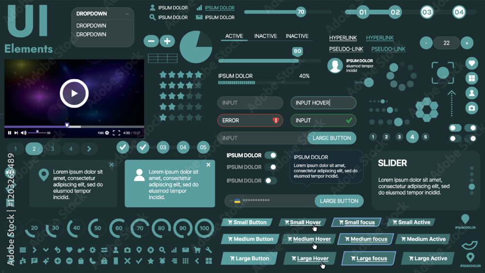 Wall mural a modern ui kit featuring a collection of buttons, icons, navigation menus, and responsive design el - Wall murals Wall mural a modern ui kit featuring a collection of buttons, icons, navigation menus, and responsive design el - Wall murals