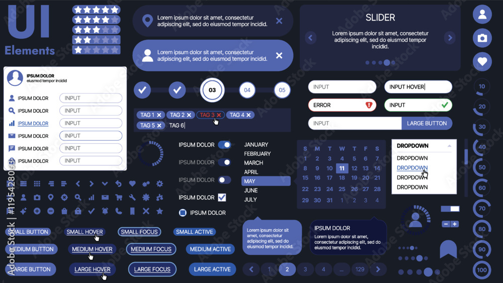 Wall mural a modern ui kit featuring a collection of buttons, icons, navigation menus, and responsive design el - Wall murals Wall mural a modern ui kit featuring a collection of buttons, icons, navigation menus, and responsive design el - Wall murals