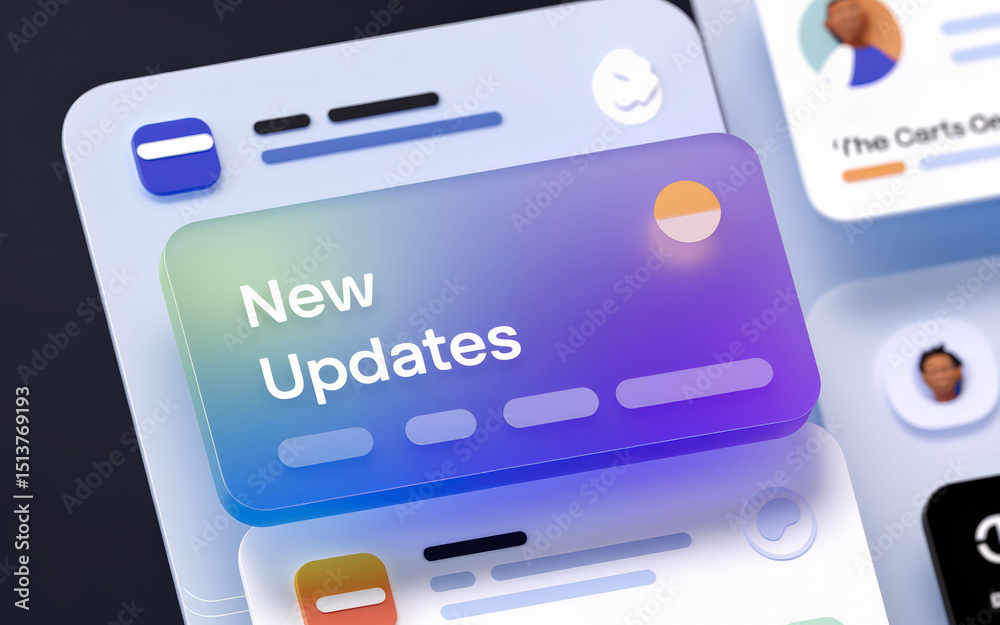 Wall mural a modern user interface screen displays a "new updates" notification card with vibrant colors and sl - Wall murals Wall mural a modern user interface screen displays a "new updates" notification card with vibrant colors and sl - Wall murals