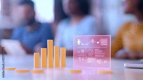 Wall mural a modern workspace featuring a transparent data display and bar graph, symbolizing analytics and tea - Wall murals Wall mural a modern workspace featuring a transparent data display and bar graph, symbolizing analytics and tea - Wall murals